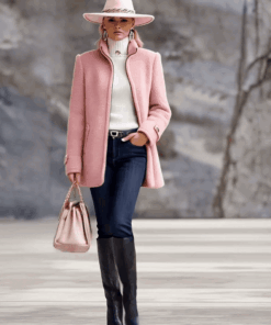 Casual Vintage Pink Polar Fleece Zip-Up Jacket Coat