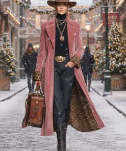 Lapel Single-breasted Velvet And Leopard Print Coat
