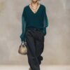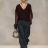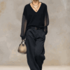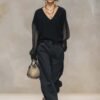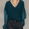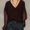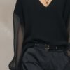Be the first to review “Breathable And Casual Comfortable V-neck Transparent Long-sleeved Black Knitted Blouse Top”