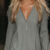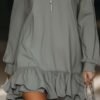 Be the first to review “Casual Loose Fashion Zipper V-neck Long Sleeve Lotus Leaf Hem Gray Mini Dress”