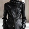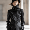 Be the first to review “Personality And Fashion High Collar Oblique Zipper Black PU Jacket”