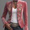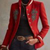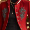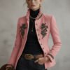 Be the first to review “Ruffled Stand-up Collar Single-breasted Rose Embroidered Woolen Jacket”